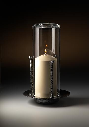 SCHUKO-lyhty, tumma metalli/kirkas lasi. Täyttö 60A, paloaika 40tuntia. Korkeus 16cm.