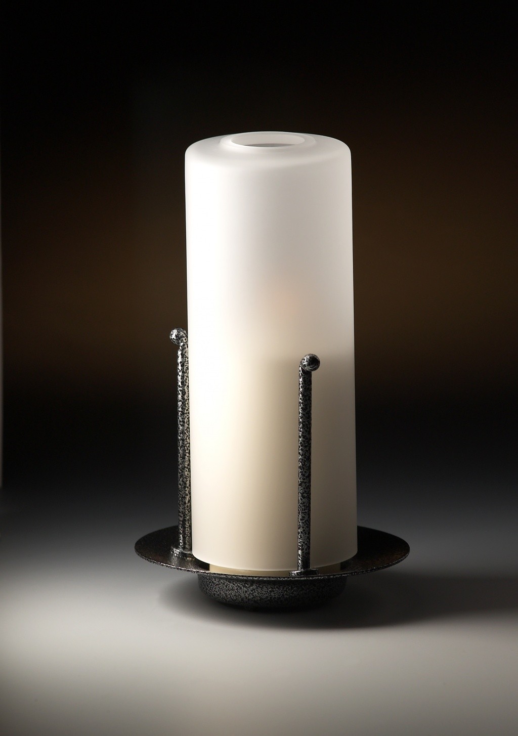 SCHUKO-lyhty, tumma metalli/ maitolasi. Täyttö 60A, paloaika 40 tuntia. Korkeus 16cm.