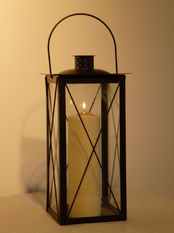 RUSTICA-lyhty, musta runko/kirkas lasi. Täyttö 10L, paloaika 80 tuntia.Korkeus 18cm.